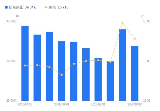 近一年(2024年10月10日至2025年10月10日),中国长城A股股东户数从18.18万户,增加至39.04万户,增幅114.78%,区间股价上涨63.50%。