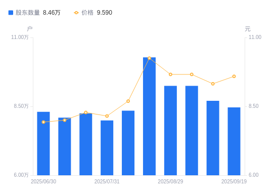 近一年(2024年9月10日至2025年8月31日),英威腾A股股东户数从6.97万户,增加至9.24万户,增幅32.53%,区间股价上涨77.22%。