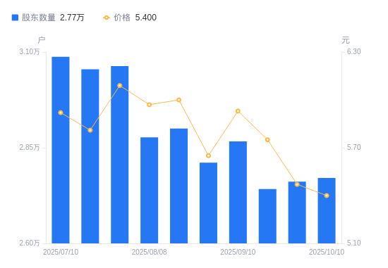 近一年(2024年9月30日至2025年9月30日),思美传媒A股股东户数从3.02万户,减低至2.76万户,降幅8.46%,区间股价上涨31.49%。