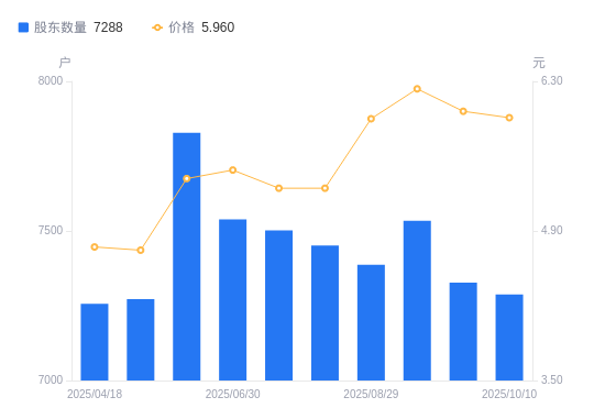 近一年(2024年10月10日至2025年10月10日),*ST天龙A股股东户数从8262户,减低至7288户,降幅11.79%,区间股价上涨29.28%。