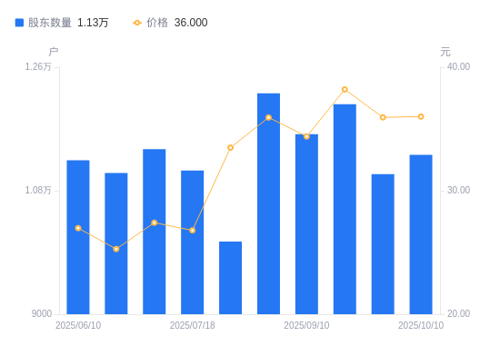 近一年(2024年10月10日至2025年10月10日),康平科技A股股东户数从8396户,增加至1.13万户,增幅34.87%,区间股价上涨75.61%。
