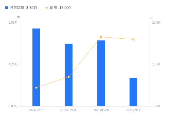 近一年(2024年9月30日至2025年9月30日),日久光电A股股东户数从4.98万户,减低至3.75万户,降幅24.69%,区间股价上涨40.69%。