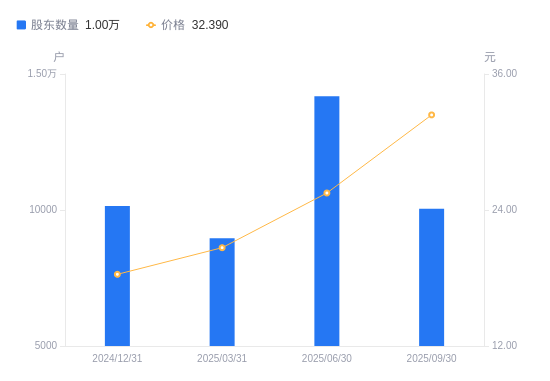 近一年(2024年9月30日至2025年9月30日),大洋生物A股股东户数从9977户,增加至1万户,增幅0.72%,区间股价上涨93.91%。