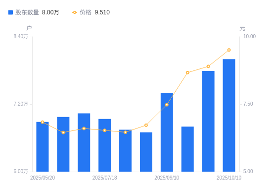 10月20日消息,数据显示,截至2025年9月30日,天富能源A股股东总户数为7.79万户,较上期(2025年9月19日)增加9904户,增幅14.56%。公司最新A股总股本为13.74亿股,其中流通A股13.74亿股,户均持有流通A股数量为1.76万股,较上期减少2569.53股,降幅12.71%;户均持流通A股市值15.7万元,较上期减少1.82万元,降幅10.40%。