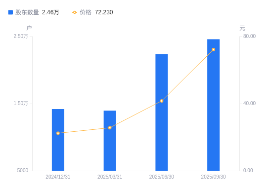 近一年(2024年9月30日至2025年9月30日),利元亨A股股东户数从9254户,增加至2.46万户,增幅165.74%,区间股价上涨245.60%。