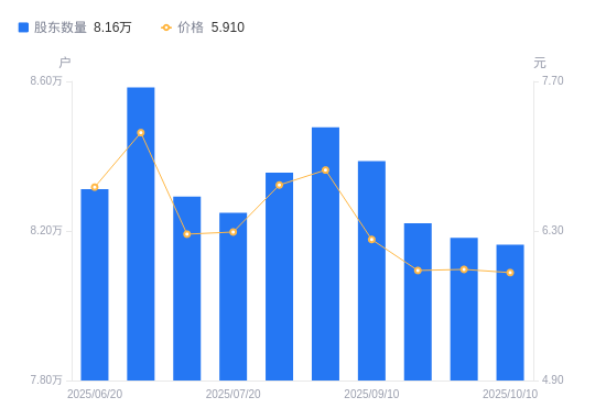 10月20日消息,数据显示,截至2025年9月30日,亚光科技A股股东总户数为8.18万户,较上期(2025年9月20日)减少387户,降幅0.47%。公司最新A股总股本为10.22亿股,其中流通A股10亿股,户均持有流通A股数量为1.22万股,较上期增加57.56股,增幅0.47%;户均持流通A股市值7.26万元,较上期增加463.63元,增幅0.64%。