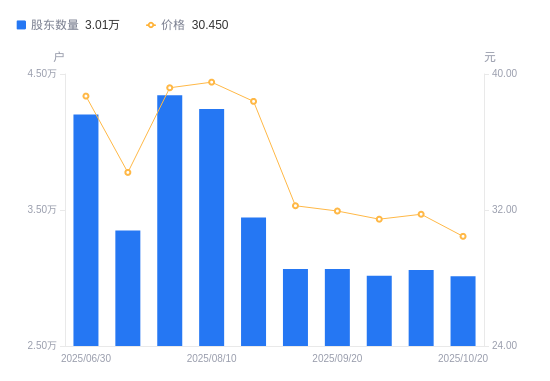 近一年(2024年12月20日至2025年10月20日),新余国科A股股东户数从2.47万户,增加至3.01万户,增幅21.89%,区间股价上涨9.06%。