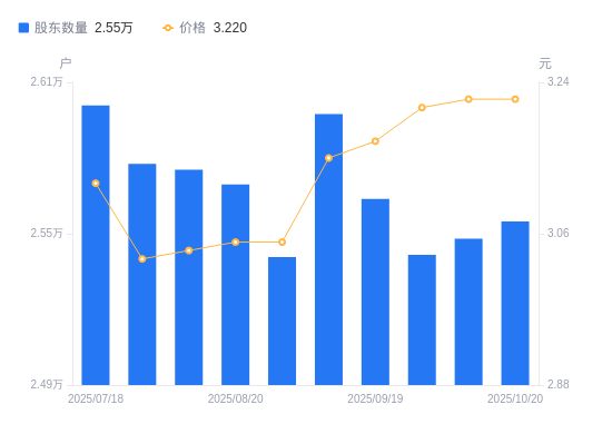 近一年(2024年10月20日至2025年10月20日),顺发恒能A股股东户数从2.96万户,减低至2.55万户,降幅13.68%,区间股价上涨22.90%。