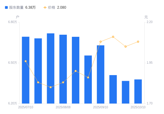 近一年(2024年12月31日至2025年10月20日),普邦股份A股股东户数从7.53万户,减低至6.41万户,降幅14.82%,区间股价上涨5.42%。