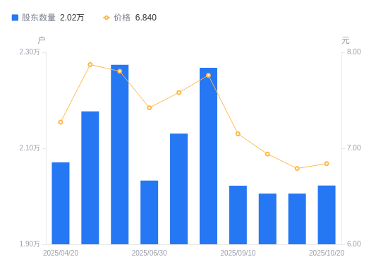 近一年(2024年10月31日至2025年10月20日),溢多利A股股东户数从2.25万户,减低至2.02万户,降幅9.92%,区间股价下跌8.82%。