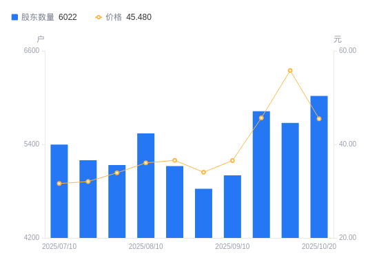 近一年(2024年10月31日至2025年10月20日),绿岛风A股股东户数从5655户,增加至6022户,增幅6.49%,区间股价上涨73.72%。