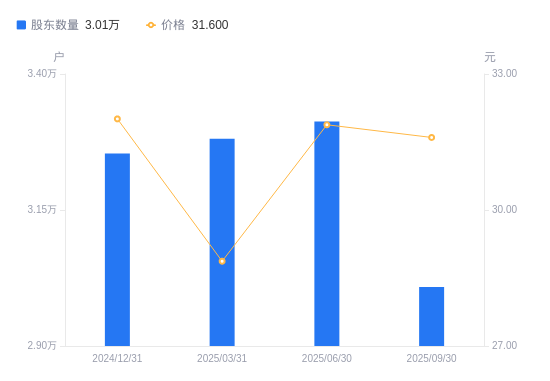 近一年(2024年9月30日至2025年9月30日),创业黑马A股股东户数从2.23万户,增加至3.01万户,增幅34.98%,区间股价上涨28.46%。