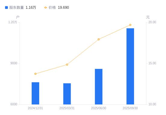 近一年(2024年9月30日至2025年9月30日),华信新材A股股东户数从7229户,增加至1.16万户,增幅59.99%,区间股价上涨42.68%。