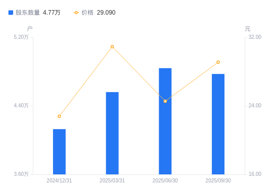 近一年(2024年9月30日至2025年9月30日),贝斯特A股股东户数从2.78万户,增加至4.77万户,增幅71.57%,区间股价上涨89.76%。