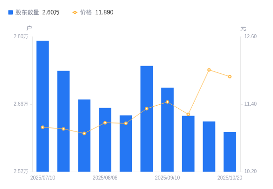 近一年(2024年10月31日至2025年10月20日),东莞控股A股股东户数从3.4万户,减低至2.6万户,降幅23.42%,区间股价上涨17.32%。
