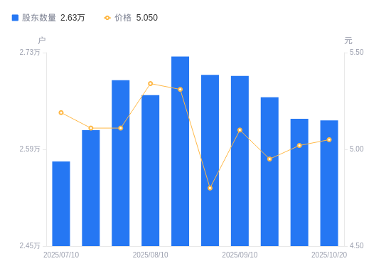 近一年(2024年10月31日至2025年10月20日),华斯股份A股股东户数从2.76万户,减低至2.63万户,降幅4.66%,区间股价上涨27.53%。