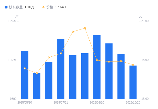 近一年(2024年10月31日至2025年10月20日),朗进科技A股股东户数从1.43万户,减低至1.1万户,降幅22.83%,区间股价下跌6.91%。