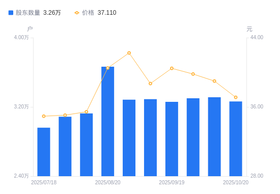 近一年(2024年10月20日至2025年10月20日),视源股份A股股东户数从2.55万户,增加至3.26万户,增幅27.74%,区间股价上涨5.09%。