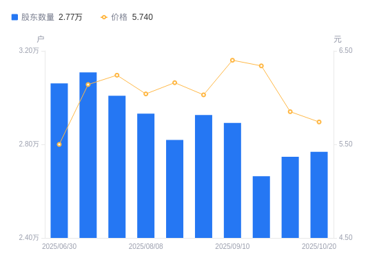 近一年(2024年10月31日至2025年10月20日),海翔药业A股股东户数从2.83万户,减低至2.77万户,降幅2.14%,区间股价下跌3.69%。