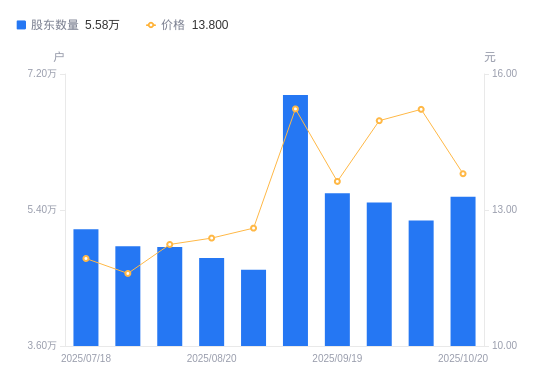 近一年(2024年10月31日至2025年10月20日),恒邦股份A股股东户数从4.71万户,增加至5.58万户,增幅18.39%,区间股价上涨23.78%。