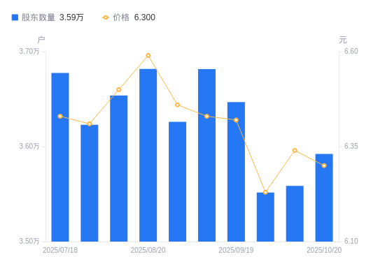 近一年(2024年10月31日至2025年10月20日),华帝股份A股股东户数从3.44万户,增加至3.59万户,增幅4.46%,区间股价下跌19.29%。