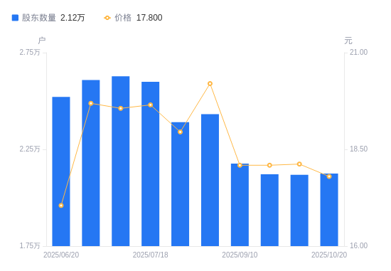 近一年(2024年10月31日至2025年10月20日),宝色股份A股股东户数从1.97万户,增加至2.12万户,增幅7.81%,区间股价上涨14.99%。
