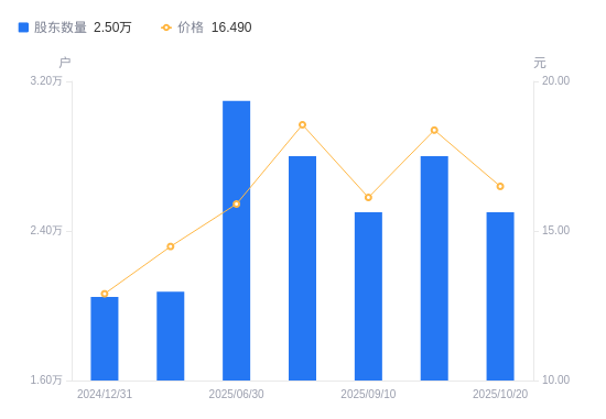 10月21日消息,数据显示,截至2025年9月30日,光力科技A股股东总户数为2.8万户,较上期(2025年9月10日)增加3000户,增幅12.00%。公司最新A股总股本为3.53亿股,其中流通A股2.48亿股,户均持有流通A股数量为8840.38股,较上期减少1069.28股,降幅10.79%;户均持流通A股市值16.24万元,较上期增加2654元,增幅1.66%。