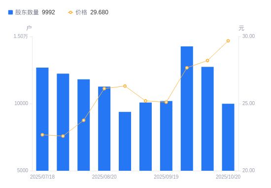 近一年(2024年10月31日至2025年10月20日),耐普矿机A股股东户数从7854户,增加至9992户,增幅27.22%,区间股价上涨8.88%。
