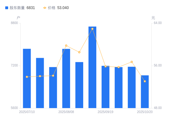 近一年(2024年10月31日至2025年10月20日),盛帮股份A股股东户数从6716户,增加至6831户,增幅1.71%,区间股价上涨28.83%。
