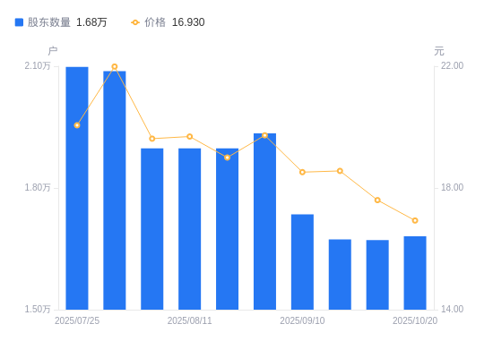 近一年(2024年12月31日至2025年10月20日),川网传媒A股股东户数从1.51万户,增加至1.68万户,增幅11.47%,区间股价上涨16.24%。
