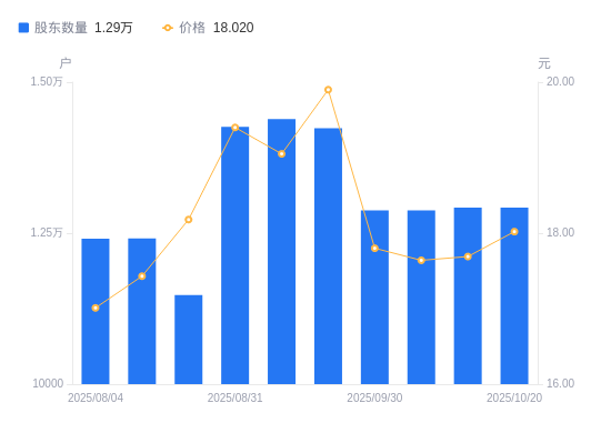 近一年(2024年10月31日至2025年10月20日),久祺股份A股股东户数从1.05万户,增加至1.29万户,增幅23.29%,区间股价上涨64.12%。
