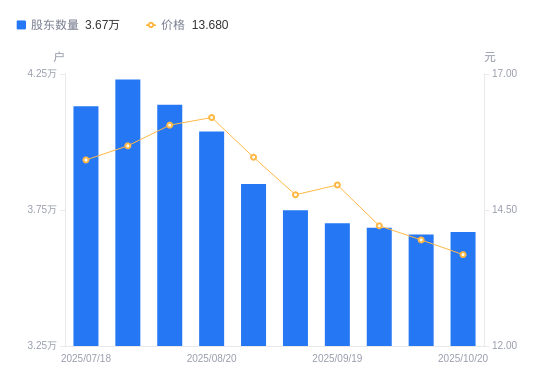 近一年(2024年11月20日至2025年10月20日),朗玛信息A股股东户数从3.96万户,减低至3.67万户,降幅7.45%,区间股价下跌7.97%。