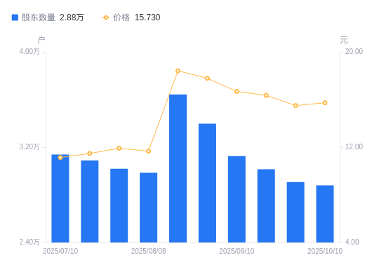 近一年(2024年11月20日至2025年10月20日),*ST汇科A股股东户数从5.12万户,减低至2.79万户,降幅45.54%,区间股价下跌43.87%。