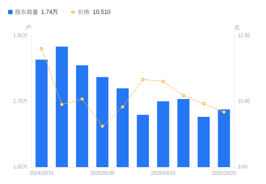 近一年(2024年10月31日至2025年10月20日),国科恒泰A股股东户数从1.86万户,减低至1.74万户,降幅6.52%,区间股价下跌10.53%。