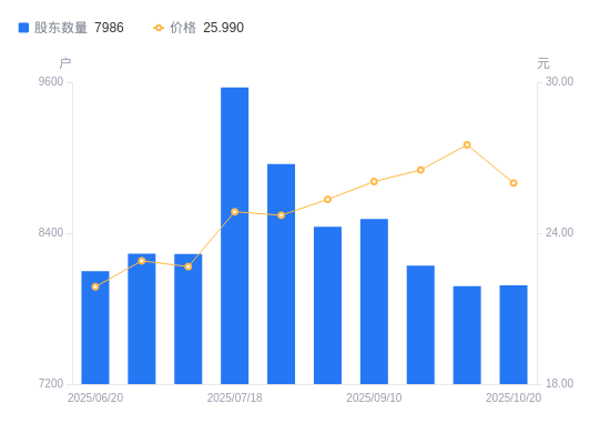 近一年(2024年10月31日至2025年10月20日),天禄科技A股股东户数从8058户,减低至7986户,降幅0.89%,区间股价上涨18.24%。