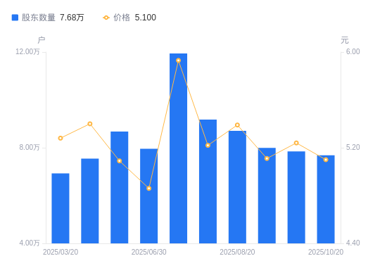 近一年(2024年10月20日至2025年10月20日),韶能股份A股股东户数从4.93万户,增加至7.68万户,增幅55.88%,区间股价上涨35.89%。