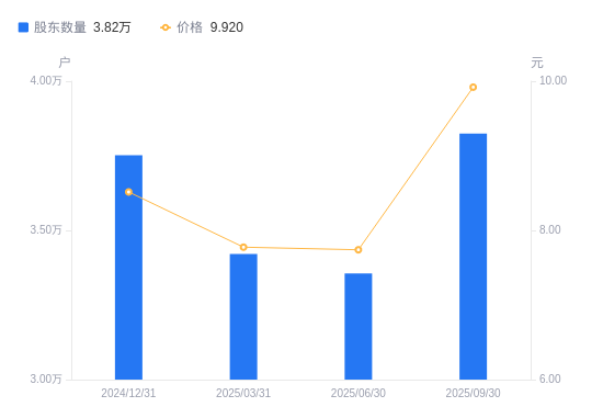 近一年(2024年9月30日至2025年9月30日),中巨芯A股股东户数从3.49万户,增加至3.82万户,增幅9.57%,区间股价上涨71.18%。