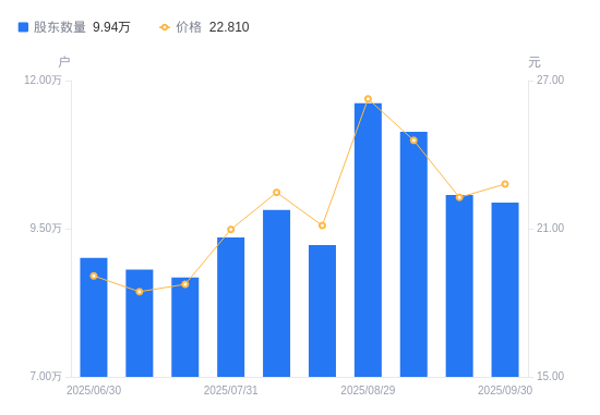 近一年(2024年9月30日至2025年9月30日),华力创通A股股东户数从9.78万户,增加至9.94万户,增幅1.63%,区间股价上涨24.78%。