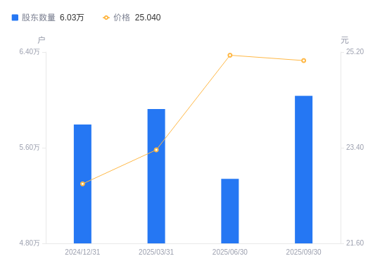 近一年(2024年9月30日至2025年9月30日),蓝英装备A股股东户数从5.89万户,增加至6.03万户,增幅2.44%,区间股价上涨37.51%。