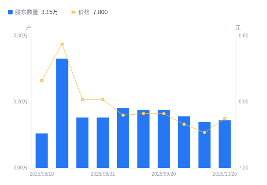 近一年(2024年10月31日至2025年10月20日),隆基机械A股股东户数从3.62万户,减低至3.15万户,降幅13.07%,区间股价上涨17.12%。