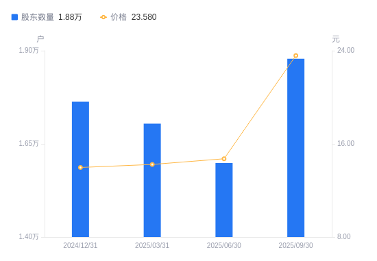 近一年(2024年9月30日至2025年9月30日),透景生命A股股东户数从1.63万户,增加至1.88万户,增幅15.48%,区间股价上涨76.47%。