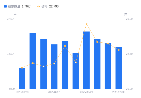 近一年(2024年9月30日至2025年9月30日),博亚精工A股股东户数从1.32万户,增加至1.76万户,增幅32.68%,区间股价上涨71.53%。