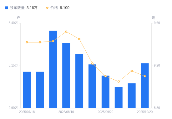 近一年(2024年10月31日至2025年10月20日),甘咨询A股股东户数从2.85万户,增加至3.16万户,增幅10.84%,区间股价上涨7.06%。