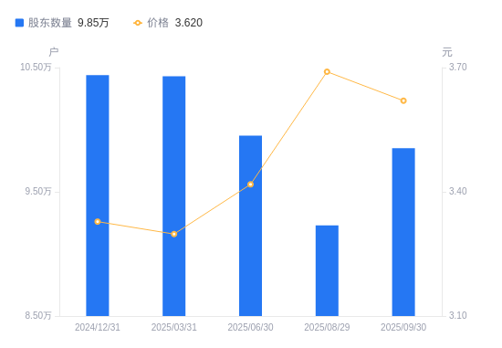 近一年(2024年9月30日至2025年9月30日),江苏有线A股股东户数从10.26万户,减低至9.85万户,降幅3.96%,区间股价上涨18.77%。