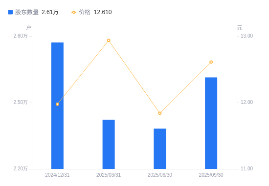 10月23日消息,数据显示,截至2025年9月30日,理工能科A股股东总户数为2.61万户,较上期(2025年6月30日)增加2313户,增幅9.71%。公司最新A股总股本为3.79亿股,其中流通A股3.65亿股,户均持有流通A股数量为1.4万股,较上期减少1356.1股,降幅8.85%;户均持流通A股市值17.61万元,较上期减少5286.52元,降幅2.91%。