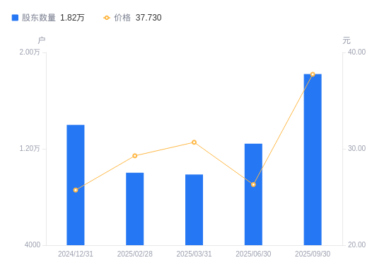 近一年(2024年9月30日至2025年9月30日),润禾材料A股股东户数从1.49万户,增加至1.82万户,增幅22.49%,区间股价上涨117.13%。
