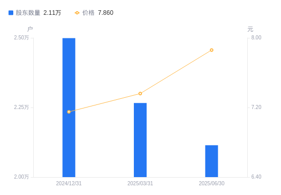 10月23日消息,数据显示,截至2025年9月30日,中威电子A股股东总户数为2.87万户,较上期(2025年6月30日)增加7507户,增幅35.50%。公司最新A股总股本为3.03亿股,其中流通A股2.61亿股,户均持有流通A股数量为9107.2股,较上期减少3233.43股,降幅26.20%;户均持流通A股市值9.16万元,较上期减少5378.96元,降幅5.55%。