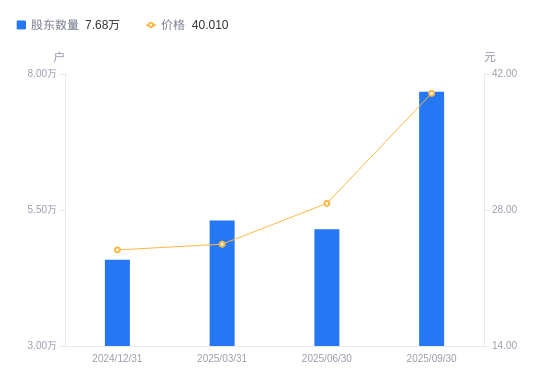 近一年(2024年9月30日至2025年9月30日),巨化股份A股股东户数从5.57万户,增加至7.68万户,增幅37.72%,区间股价上涨96.42%。