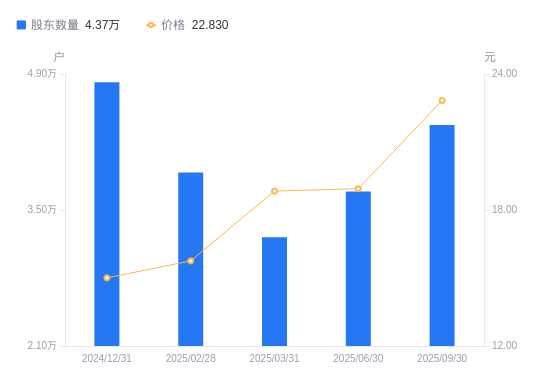 近一年(2024年9月30日至2025年9月30日),山金国际A股股东户数从4.81万户,减低至4.37万户,降幅9.14%,区间股价上涨31.55%。