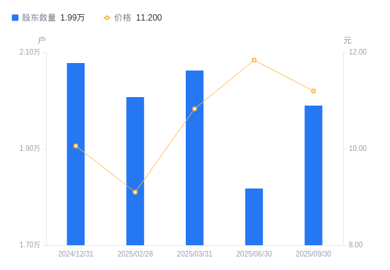 近一年(2024年9月30日至2025年9月30日),永新股份A股股东户数从2.07万户,减低至1.99万户,降幅3.68%,区间股价上涨32.54%。